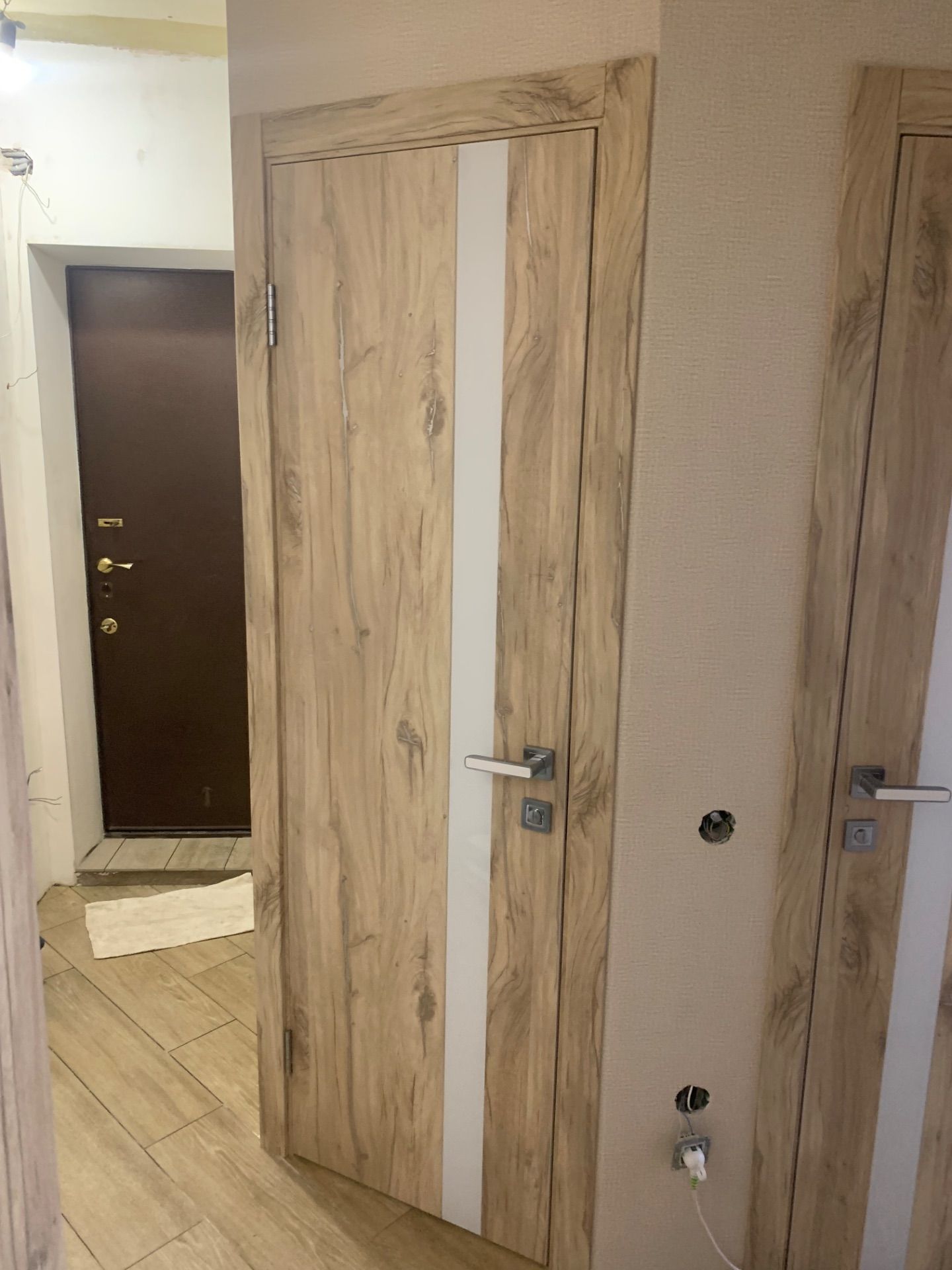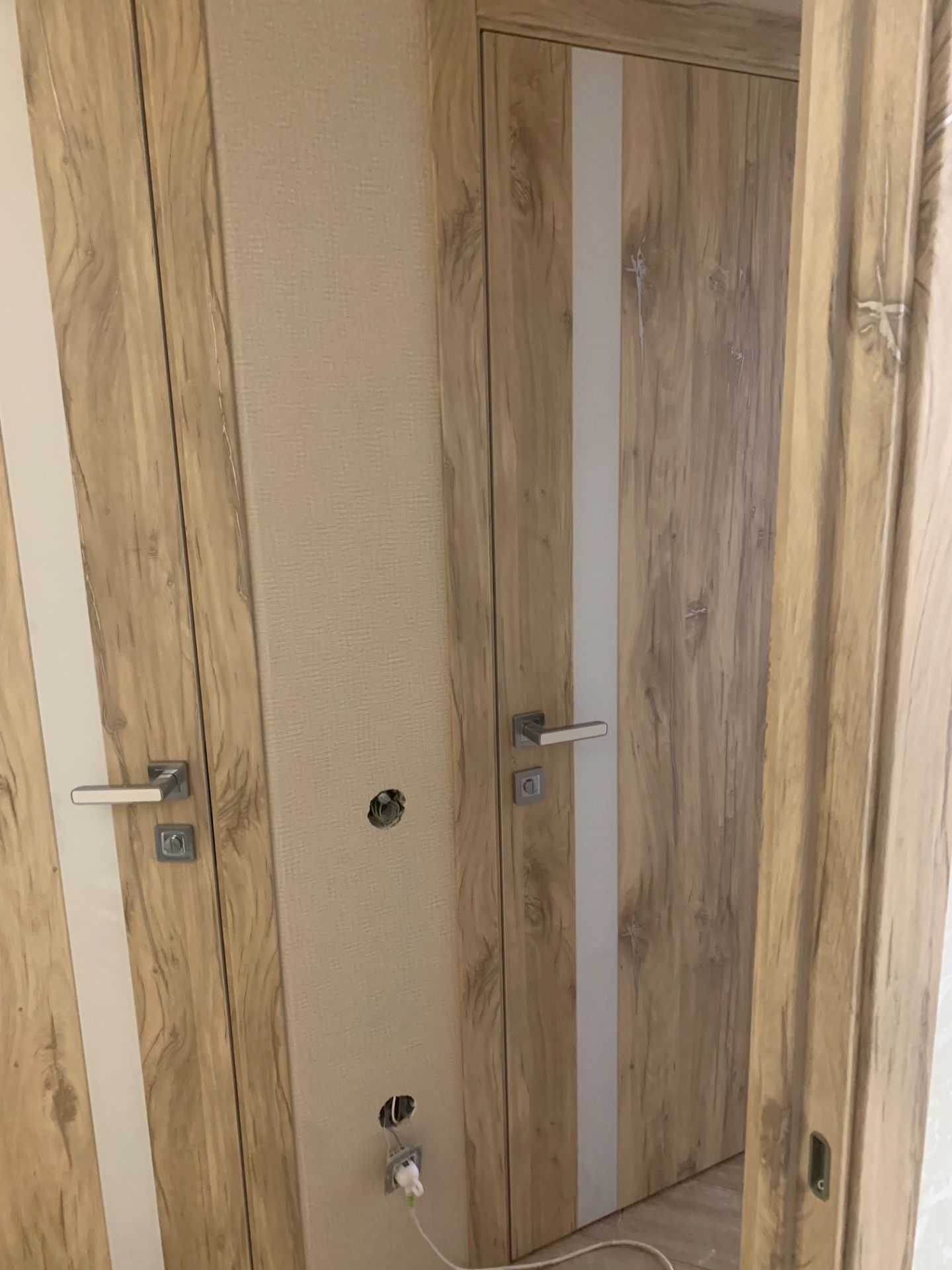 Кроме того производится врезка под скрытые петли. Такая опция помогает избежать лишних пыльных работ на адресе и сокращает время работы на монтаже. По возможности врезки в конкретную модель уточняйте у менеджеров.