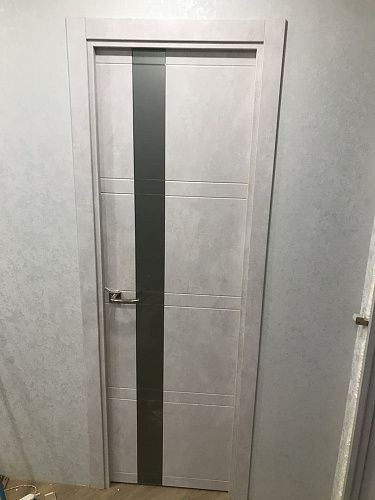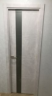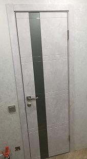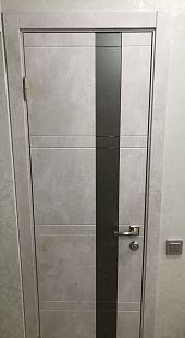 Дверь ПО Evolution 1 Бетон лайт стекло зеркало-графит из Экошпона COVERFLEX (Двери Нева) в Тихвине с установкой и доставкой